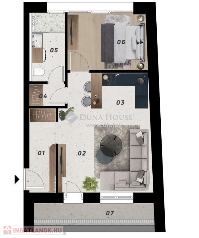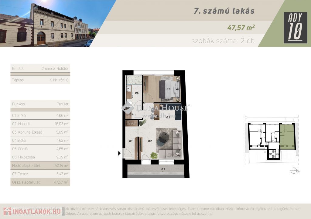 7. lakás 42,14 m2 + 5,43 m2 (össz.:47,57 m2) 49.500.000,-