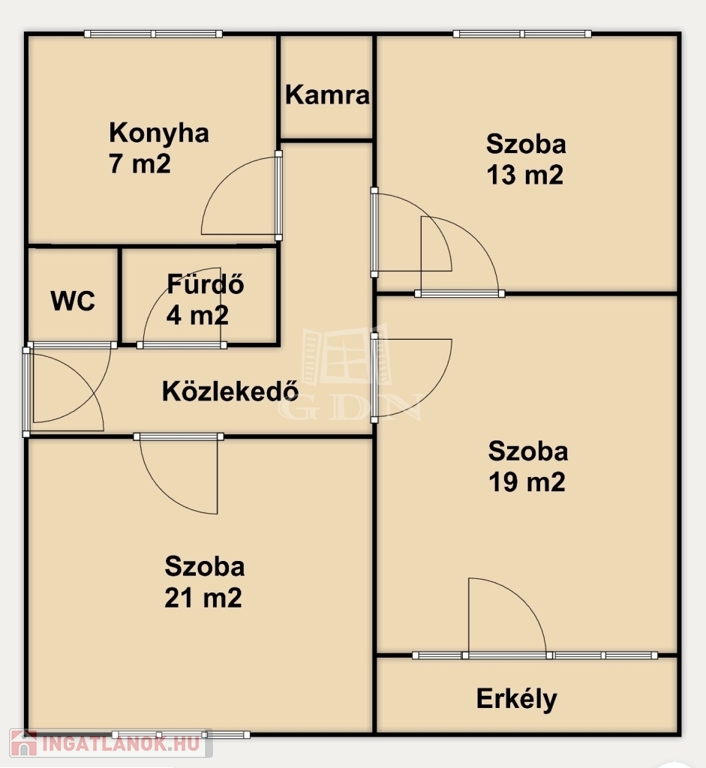 A nagyszobából nyílik egy 4 négyzetméter nagyságú erkély.