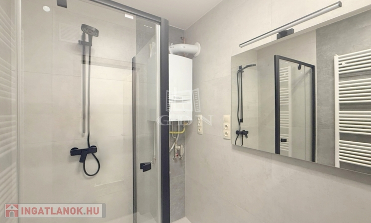 A világos ingatlan melegvízellátásáért és melegéért egy új gázkazán felel, utóbbi lapradiátor hőleadókal, melynek alternatívájaként a mindkét hálóban található inverteres hűtő - fűtő klíma használható.