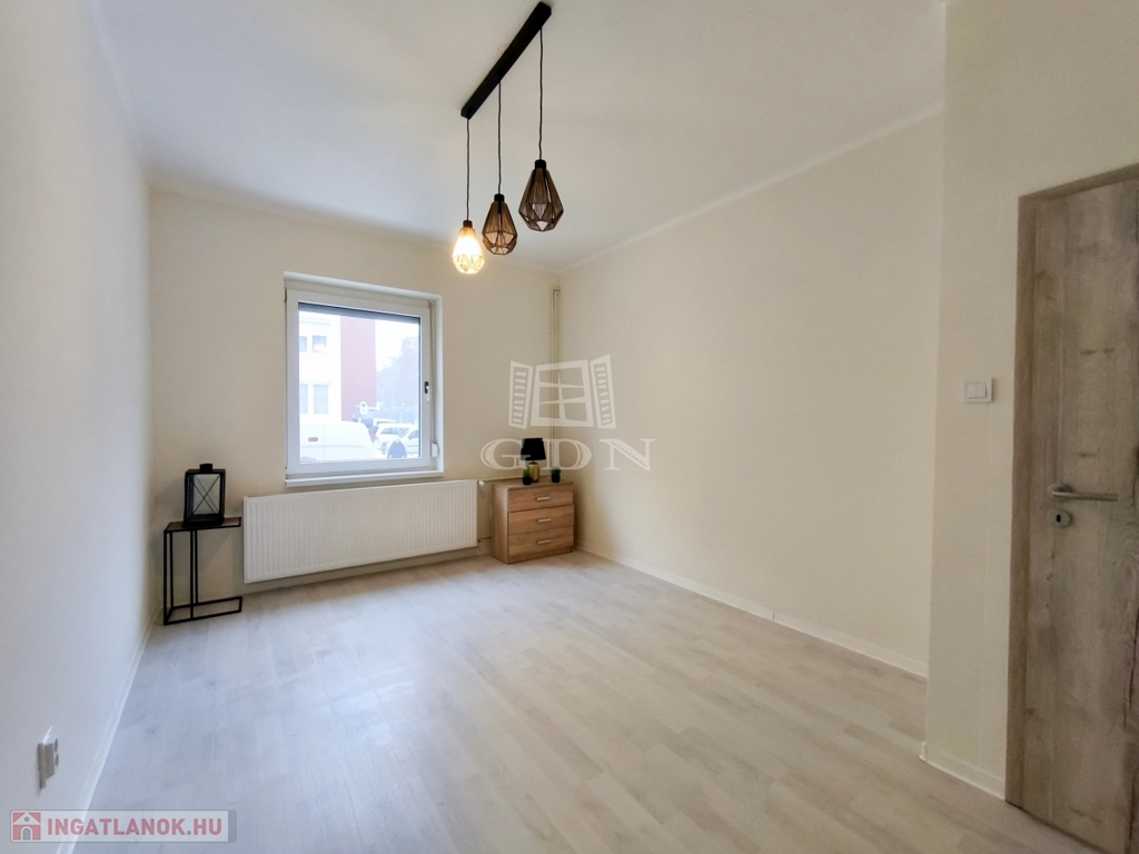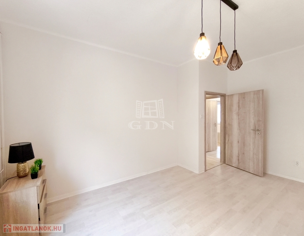 Az ingatlan elrendezése praktikus és jól élhető, három külön nyíló, laminált padlóval burkolt szoba, felújított fürdőszoba és kényelmes konyha szolgálja a mindennapi komfortot, így ideális választás családoknak, fiatal pároknak, de akár éltesebbek számára is.