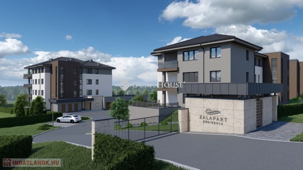 ZALAPART Residence Általános Ismertető:A lakópark egyedülálló adottságokkal rendelkező lokációban épül, közel a belvároshoz, a Zala utcában, közvetlen a Zala folyó partján, a belvárostól mindössze 8 perc séta távolságra, gépkocsival mindössze 2 percre. A közel 1 hektáros, természetközeli, nyugodt, zöld környezetben épülő lakópark épületei egymástól kellő távolságra helyezkednek el, biztosítva ezzel a nyugodt és intim életteret. A projekt keretein belül 4 épület épül, A,B,C és D lépcsőházakkal, összesen 48 lakással. Az A és B épület a Zala utca felől, a telek felső részén fekszik, 2-3 szobás lakásokkal, 54-73 m2 közötti alapterülettel. Szintenként 4 lakás található, valamennyi lakás déli tájolású, a Zala folyó felé néz. A fő tervezési szempont a minél nagyobb hálószobák, az amerikai konyhás kialakítás és a jól használható terasz volt. A C épület a telek alsó részén, a Zala folyó partján fekszik, itt nagyobb, 3-4 szobás, 65-89 m2 alapterületű lakások kerülnek kialakításra, szintenként 3 lakással, kényelmes teraszokkal, a földszinti lakások saját kertkapcsolattal rendelkeznek.A D épület szintén a telek alsó részén, a Zala folyó partján fekszik, itt 2-3-4 szobás, 49-96 m2 közötti lakások kerülnek kialakításra, szintenként 3 lakással, kényelmes teraszokkal. A földszinti lakások saját kertkapcsolattal rendelkeznek.A lakások értékállóságát és kényelmét a városon belüli páratlan elhelyezkedés, az átgondolt tervezés, a minőségi anyagok használata, a nagyméretű, intim teraszok, a lift, a megújuló energia, egyedi és közös tárolók, fedett beállók, garázsok biztosítják. Minden épületben kerékpár- és babakocsi tároló kerül kialakítása, külön tárolók vásárlására is van lehetőség. Az épületek egymástól kényelmes távolságra helyezkednek el, a beépítés szellős, nem túlépített. Az alacsony beépítési mutató mellett a telek nagy része zöldfelület, fákkal, növényekkel betelepített, a lenti épületek között közösségi udvar, park kerül kialakítása. A parkolók térvilágítást, az épületek közötti sétányok díszkivilágítást kapnak mozgás- és alkonykapcsolós vezérléssel.Sok társasházban gondot jelentenek a szűk parkolók és garázsok, ezt figyelembe véve a ZalaPart Residence garázsai és a parkolói kényelmes méretűek, az átlagosnál nagyobbak. A felszíni parkolók 2,6-2,8 m szélesek, a garázsok 16-19 m2 közöttiek, széles kapuval felszereltek. Minden lakáshoz vásárolható felszíni parkoló, illetve ezen felül saját garázs is. Lehetőséget biztosítunk fedett felszíni parkoló vásárlására is, illetve elektromos töltőpont előkészítése is kérhető a garázsokhoz és egyes felszíni parkolókhoz. Kialakításra kerül 1 db társasházi, közösségi elektromos autó töltőpont.Építészeti kialakítás, gépészet:A műszaki tartalomnál a fő szempontok az energiatakarékosság, az alacsony rezsi és a magas műszaki színvonal voltak. Az épületek téglából, helyenként vasbeton szerkezetekből, monolit beton födémmel épülnek, magastetős kialakítással, tetőtéri lakás nem készül. A külső falakra minimum 15-20 cm-es hőszigetelés készül, a nyílászárók 3 rétegű üvegezésű, melegperemes műanyag szerkezetek, kívül fóliázottak, belül fehér színűek .Minden homlokzati nyílászáróhoz vakolt redőnytok kerül beépítésre, a hálószobákban rovarhálóval felszerelt kézi mozgatású, alumínium redőnyökkel. Minden nyílászáróhoz kerül elektromos kiállás a redőnymozgatáshoz, így a motoros mozgatás is könnyen megoldható lesz.A ház fűtése minden lakásban egyedileg szabályozható, levegő-víz rendszerű, négycsöves H tarifás hőszivattyús padlófűtés. A lakásokban az alapfelszereltség részeként, minden szobában Fan-COIL rendszerű, hűtő-fűtő klíma kerül kiépítésre, amely szintén a hőszivattyúról üzemel, így kültéri egységek nem kerülhetnek a házak homlokzatára. A lépcsőházak temperált fűtöttek, a garázsok külön villanyórával felszereltek. Minden épülethez napelem előkészítés is készül. A lakások között és a lépcsőház és a lakás között hanggátló falszerkezet kerül beépítésre, a födémben hangszigetelő réteg kerül az aljzatbeton alá. Ezen hanggátló falak elé ahol szükséges, gipszkarton vagy Ytong előtétfalat terveztünk hangszigeteléssel. A lakásokat megközelítő folyosó a lépcsőháztól távol helyezkednek el, a liftek nem határosak lakással. Belsőépítészet:Minden lakástípusra egyedi belsőépítészeti terv készült, amely érinti a bútorozást, a villamos kapcsolók, dugaljak elhelyezését, a fürdők berendezését és burkolatkiosztását és a belső, egyedi hangulatot, design-t. Az alapos tervezésnek köszönhetően a leendő lakónak már nem kell külön kitalálnia a funkcionális elrendezést, a lakások aszerint lettek finomhangolva, hogy jól élhetőek legyenek és megfeleljenek a mai kor követelményeinek, trendeknek, és ezáltal hosszú távon is értékállóak legyenek. Mire számíthat, ha a ZalaPart Residence-t választja új otthonául?alacsony energiafelhasználású, modern, értékálló otthona leszmagas műszaki felszereltségre (hőszivattyús fűtés, klíma, modern nyílászárók, redőnyelőkészítés, igényes burkolatok)autójával védett helyen parkolhat, tágas, kényelmes parkolóhelyekenparkosított, körbekerített udvarrabiztonságos beléptető rendszerre elektromos kapuval (nem sorompóval)minimum 10 m2-es hálószobákra2 fürdőszobás lakások közül is választhatD-i, vagy Ny-i tájolású, Zala folyóra és a városra néző kilátásrafedett, nagyméretű teraszokrajól bútorozható, illetve saját gardróbos lakásokra Amennyiben fontos Önnek a n