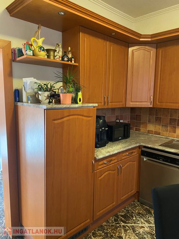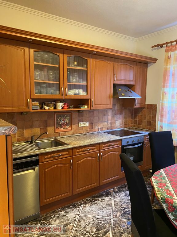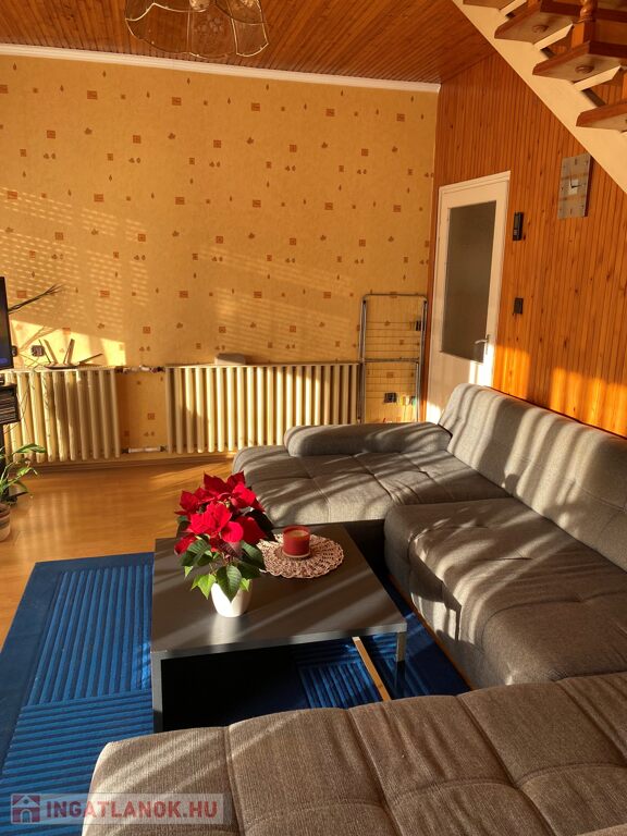 Az ingatlan kényelmes, minden igényt kielégítő, 180 nm nagyságú. Található benn egy tágas nappali, kettő nagy szoba, három félszoba, egy gardrób, két fürdőszoba, egy különálló WC, jól felszerelt konyha, kamra, kazánház és garázs. A konyhában mosogatógép, villanytűzhely és sütő, páraelszívó készülék, valamint beépített hűtőszekrény biztosítja a kényelmet. A garázsban szerelőakna és rengeteg tárolási lehetőség van. Fűtése Totya 55-ös vegyestüzelésű kazán. A gázkazánt évek óta nem használják. A ház légkondicionálóval ellátott. A meleg vizet gázbojler biztosítja, de villanybojler is rendelkezésre áll.