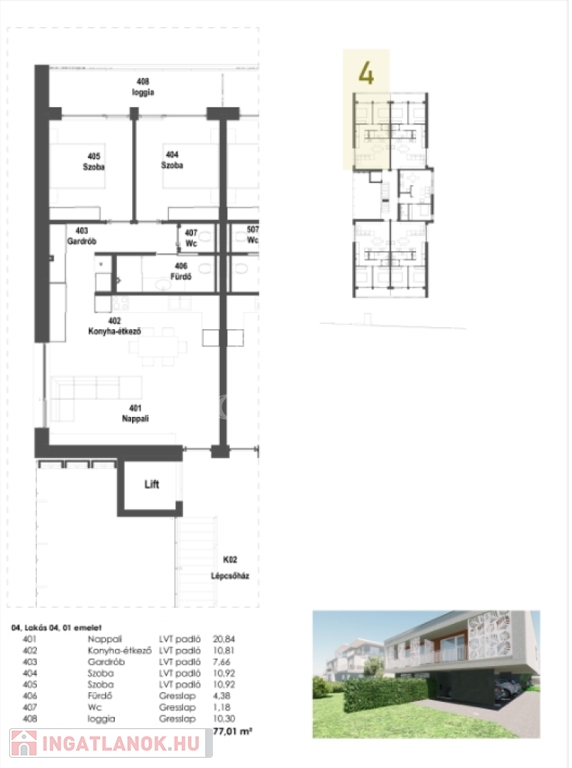 Emeleti lakások beosztása és vételára: