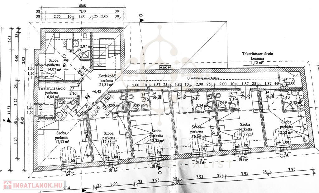 konyha (melegkonyhás engedéllyel) tárolóhelyiségek, mellékhelyiségek helyezkednek el.