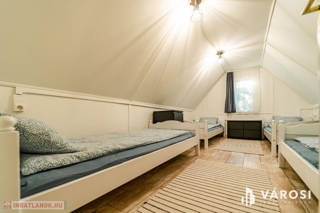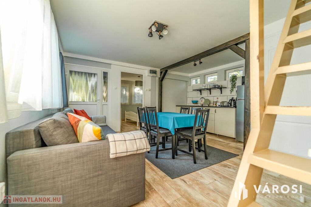 Eladásra kínálom Doboz-Szanazug csendes, természeti környezetében a Körösvölgyi Apartmanház üdülőkomplexumát, amely egyaránt ideális befektetésként, vállalkozási célra vagy saját pihenőhelynek. A három, egyenként 53 m² hasznos alapterületű, teljeskörű belső felújításon átesett, igényesen berendezett faház összesen 18 vendéget tud fogadni, mindegyik apartman modern konyhával, étkezővel, kényelmes hálószobákkal és fürdőszobával valamint hűtő-fűtő klímával és elektromos fűtő testekkel felszerelve várja az érkezőket.