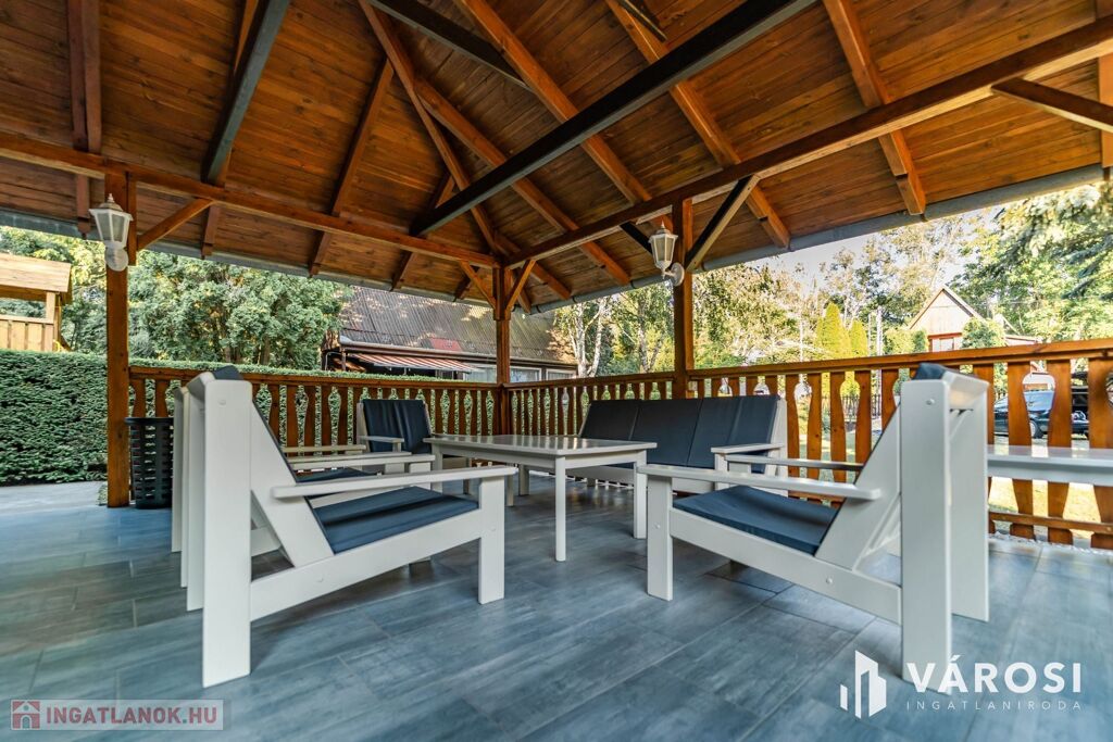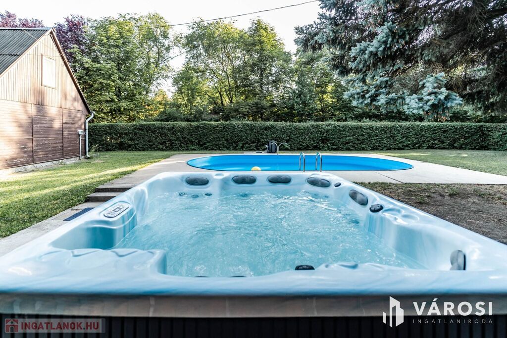 A 2089 m²-es, parkosított telken medence, jakuzzi, kemence és hangulatos kerti pihenőhelyek szolgálják a kikapcsolódást, emellett zárt parkolási lehetőség és wifi is biztosított. Az ingatlan teljes berendezéssel és kültéri tartozékokkal együtt kerül értékesítésre.