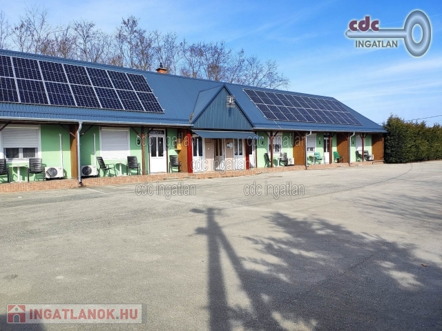 Vas megyében, a 86-os főközlekedési út mellett kínálunk megvételre egy bejáratott, jól működő vendéglátó egységet. Az építmény része egy könnyűszerkezetes épület, ahol 6 db kétágyas apartman található, amely fűtése hűtő-fűtő klímával működik. Az apartmanok egyenként 27 m2 méretűek. Előszoba, zuhanyozó, külön WC-vel és egy szoba konyhasarokkal került kialakításra minden apartmanban. A főépüleben melegkonyhás étterem működik, 40 vendég fogadására alkalmas üzlettérrel. Az étterem felett egy hangulatos, napfényes, 68 m2-es, összkomfortos lakás került kialakításra, melyet jelenleg a tuajdonos használ. A telken több melléképület is található, melyek funkció szerint garázs, fatároló és kerti eszköz tároló. Az ingatlan elhelyezkedése, földrajzi fekvése biztosítja a folyamatos vendégforgalmat.