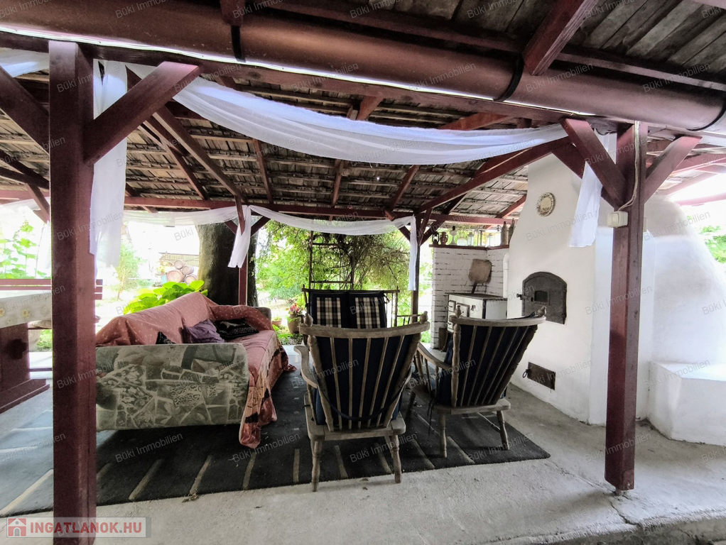 Az udvar igazi vidéki oázis: az ízlésesen parkosított, 3200 m²-es telek árnyékos fákkal, gondozott pihenősarkokkal és barátságos zugokkal várja az itt megszállókat vagy éppen a rendezvények vendégeit. A loggiával kiegészített főépület mellett igazi kincs a különálló nyári konyha – hagyományos cserépkályhával felszerelve – ahol öröm a főzés. A filagória és a kemence melletti tér ideális helyszín egy családi vagy baráti grillezéshez, borozgatáshoz, meghitt beszélgetésekhez. A hidegebb hónapokra is gondoltak: a kert végében különálló szauna biztosítja a testi-lelki feltöltődést.