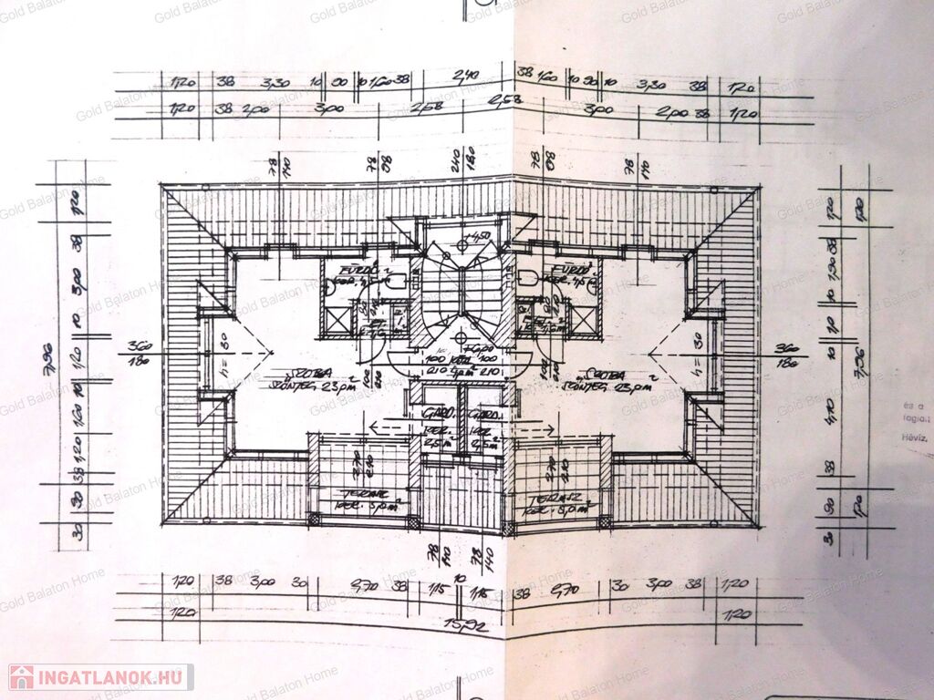 - első emelet: 2 kétszobás apartman erkélyekkel