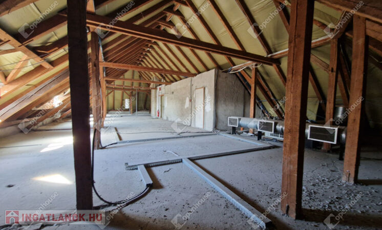 A jelenleg beépítetlen tetőterében található a gépészet.