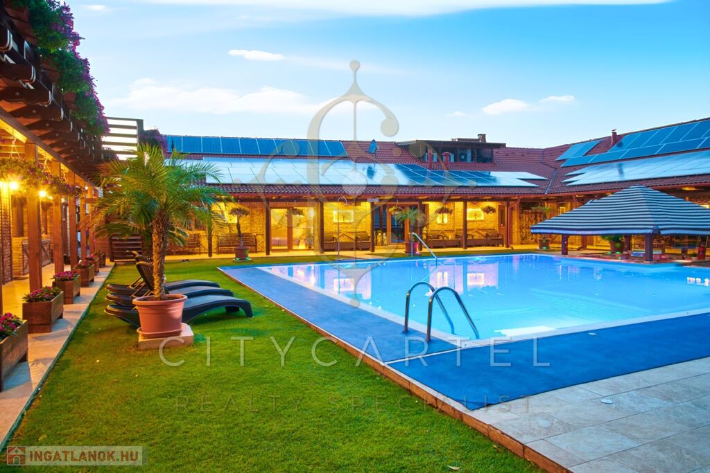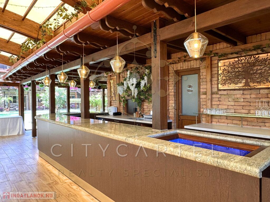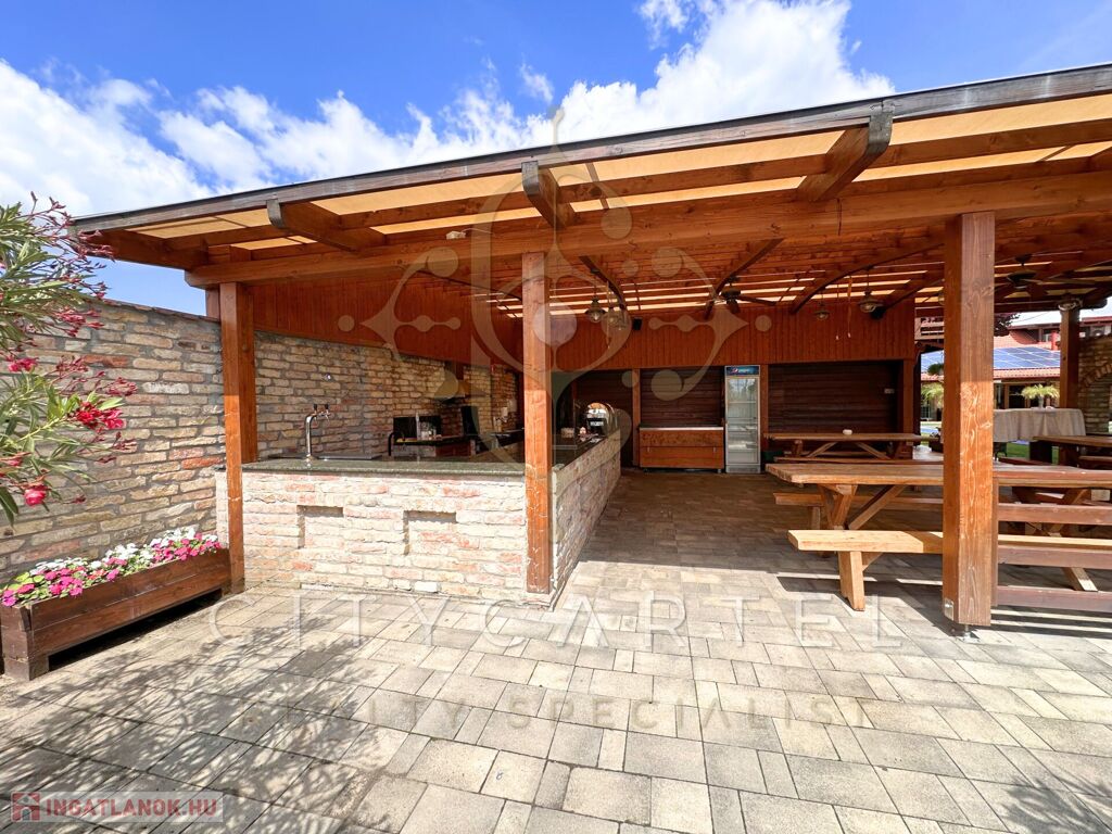 - 4175 nm-es telken 755 nm-es különleges, Bali hangulatú épületkomplexum wellnessel és medencével rendelkező 9 szobás panzióval, konferenciateremmel, étteremmel, bárral, kerti grillezővel, sportpályával, önálló parkoló udvarral -