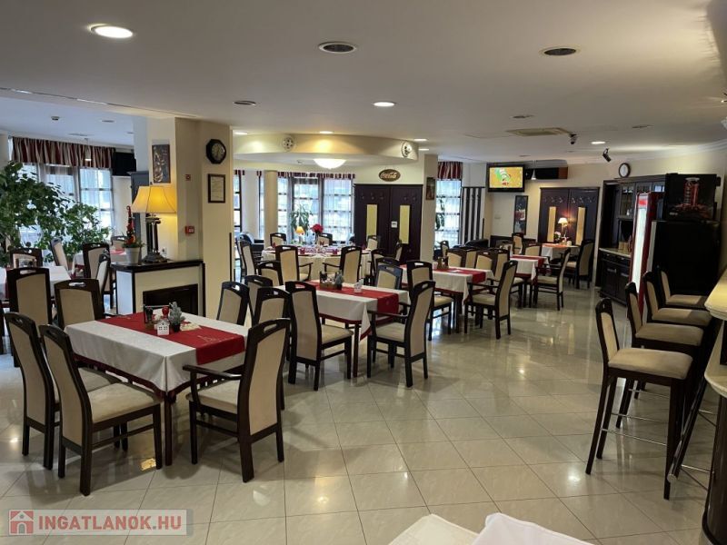 Az épületben 50 fős étterem van minden igényt kielégítő tágas, jól felszerelt konyhával.