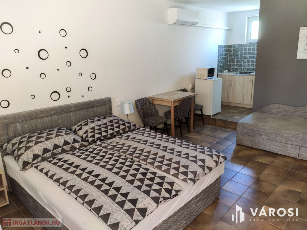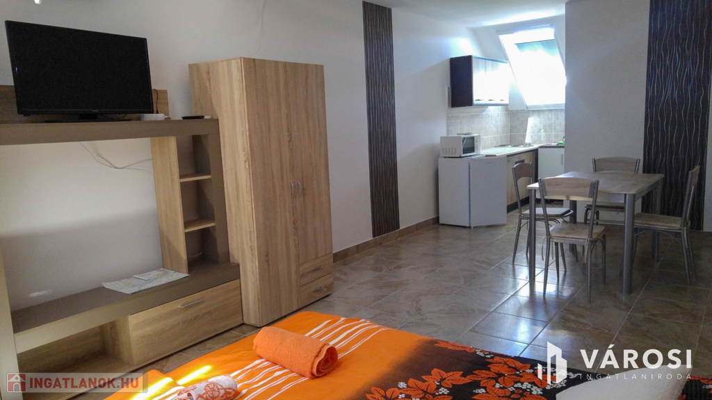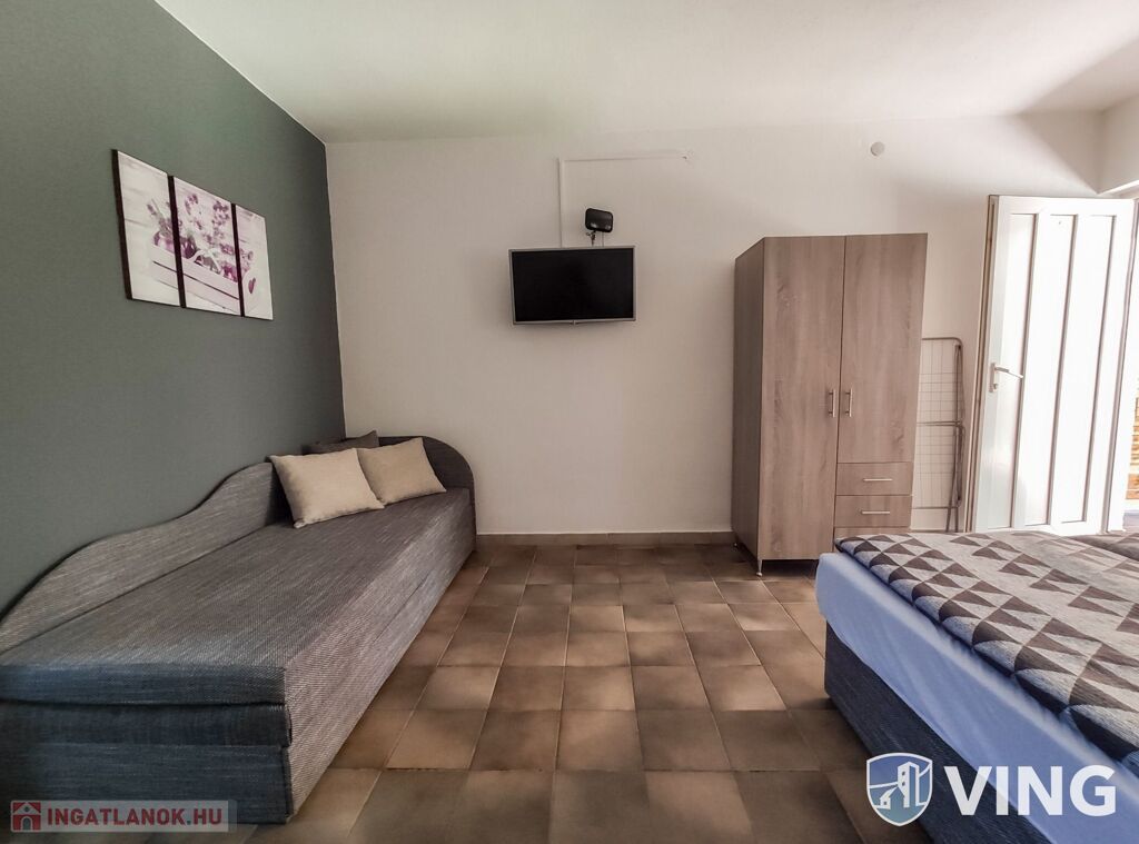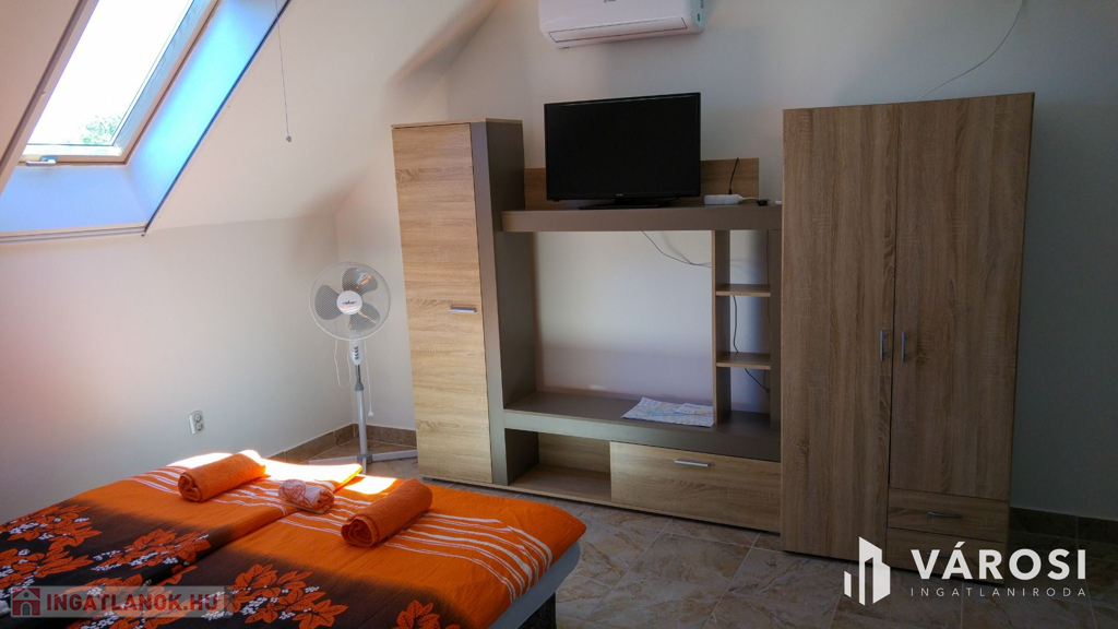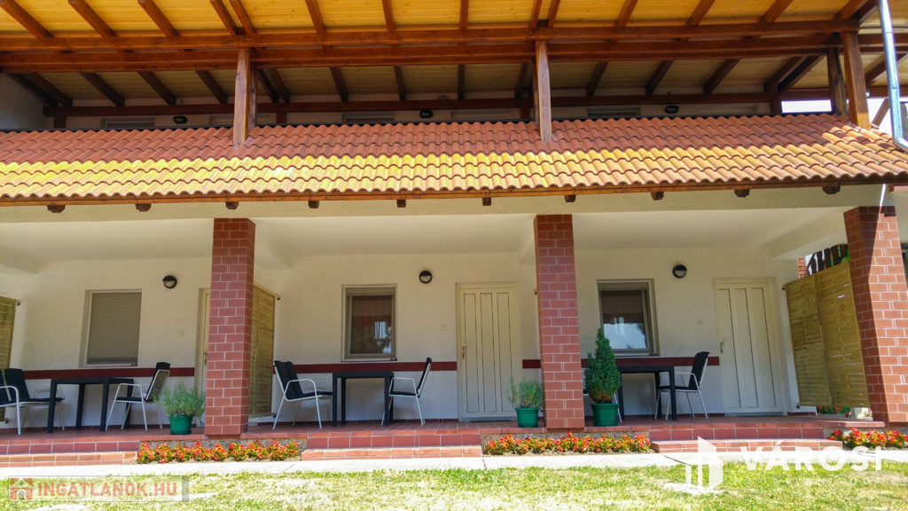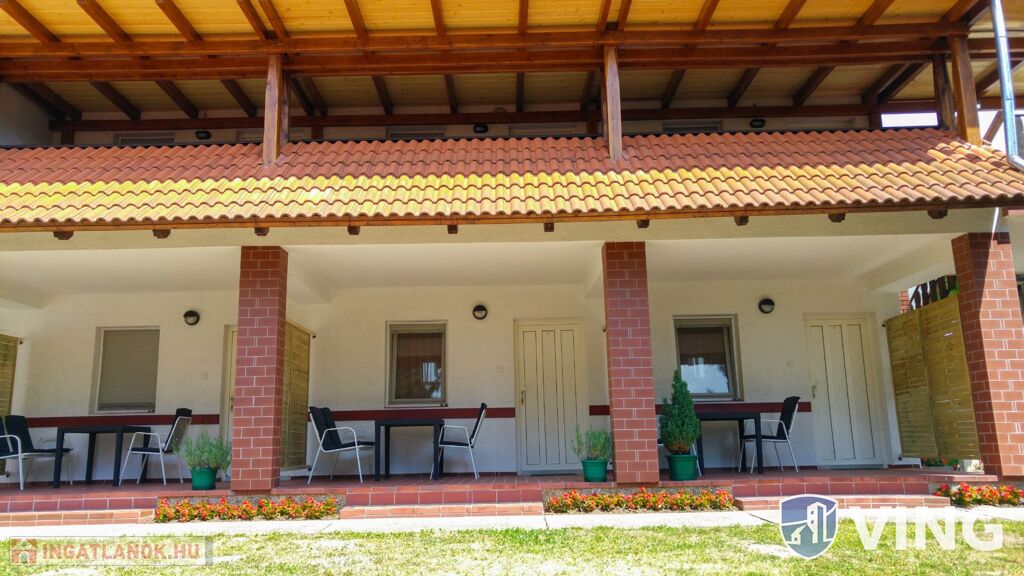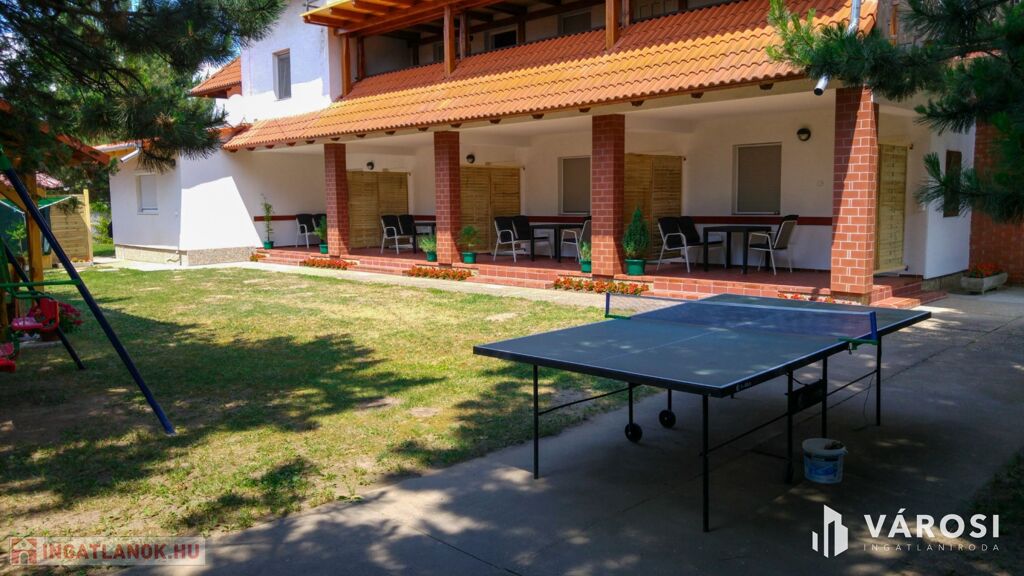 Siófok kertvárosi részében eladó egy 15 apartmanból álló apartmanház! Precízen átgondolt, rendkívül praktikusan megtervezett, bruttó 500 m2-es házról van szó. Ellentétben a legtöbb hasonló balatoni ingatlannal ez az épület kifejezetten kiadásra épült, nem utólagos átalakítások eredménye. Ennek megfelelően mind a 15 apartmanjához saját felszerelt konyha és fürdőszoba tartozik. Mindegyik külön bejáratú. Az összes lakóegységnek hűtő-fűtő hőszivattyús klímával van megoldva a hűtése és a fűtése. A "H" tarifás mérőóra fel van szerelve az ingatlanra, így a fűtése rendkívül gazdaságos. A használati meleg vizet gázbojler biztosítja.