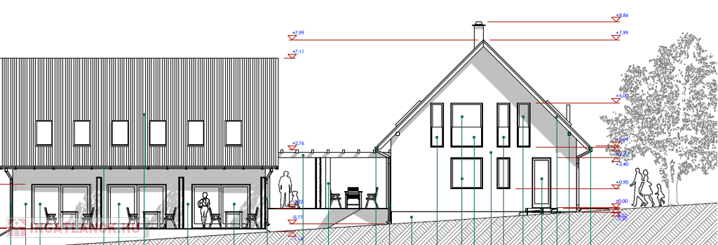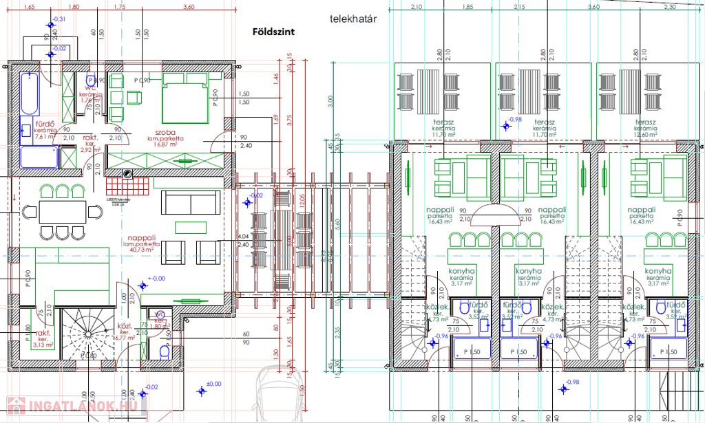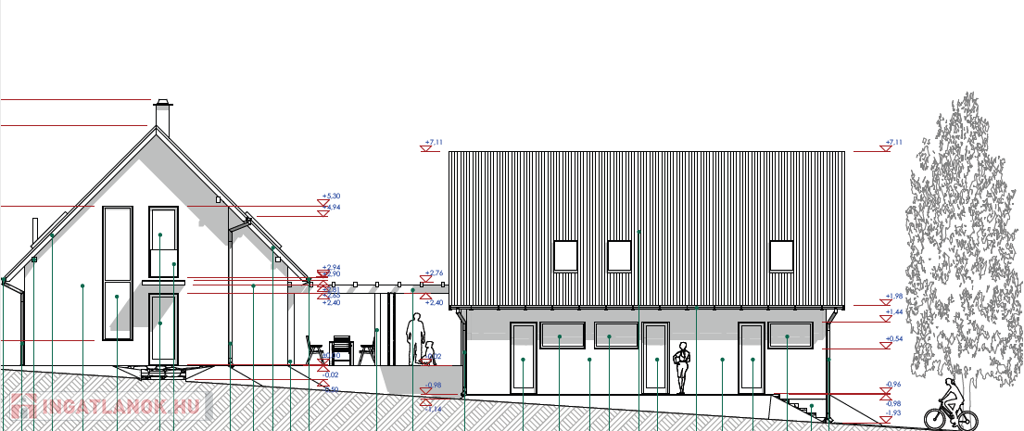 - tervezett gépkocsi beállók, a három apartmanból álló, külön bejáratú apartmanház déli oldalán