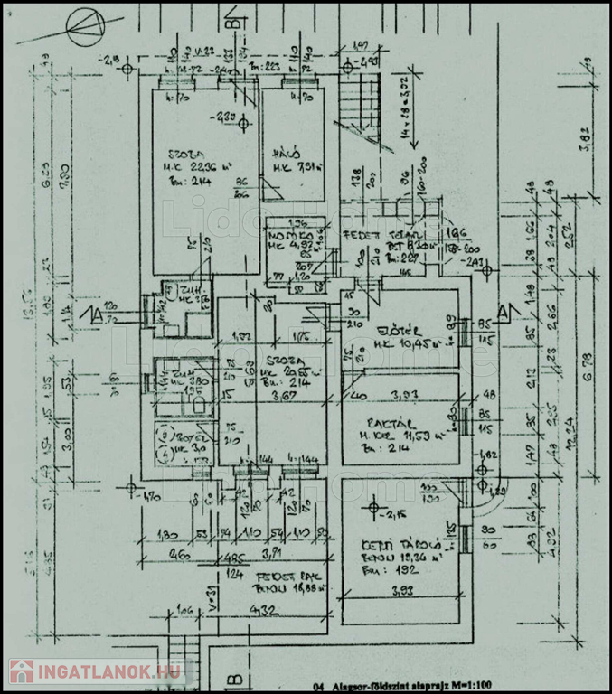 1+2 félszobás, emeletes épület, gáz-cirkó fűtéssel, földszinti tárolókkal (cca. 2x46 m2).