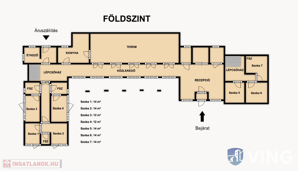 - 6 külön bejáratú apartman mely 1 szobából 1 fürdőszobából áll,
