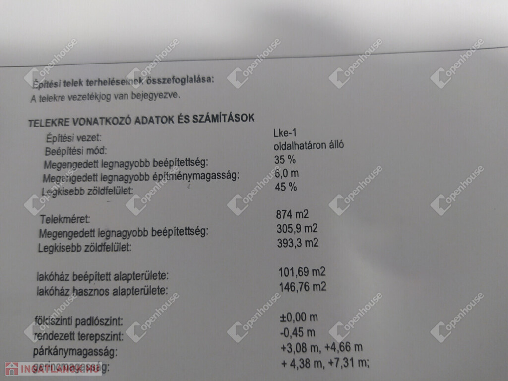 - telek nagysága /tulajdoni lapon meghatározott/ : 874 nm