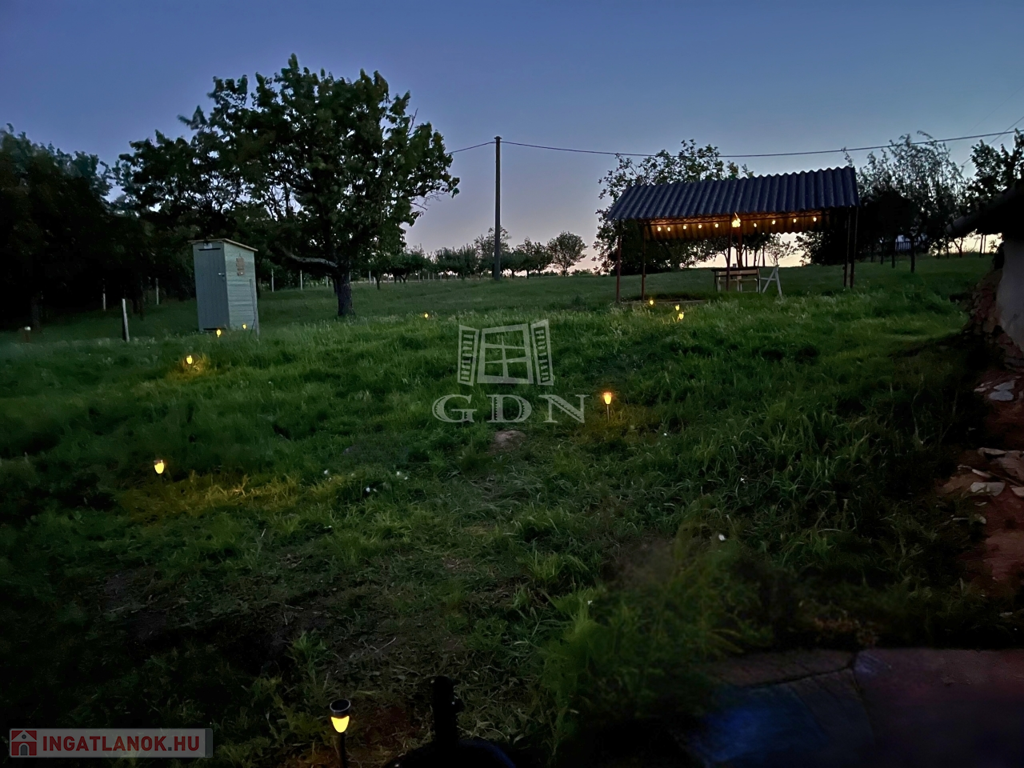 Az aszfaltos út mentén lévő telken található egy felújítandó kb. 20 m2-es ház (gazdasági épület), amelybe a víz és villany már be van vezetve. Az épület mellett 3 m3-es szennyvíztartály került elhelyezésre. A telek legfelső részén különböző fák (alma, körte, szilva, kajszi, cseresznye, meggy mellett 3 nagyobb diófa és 8 db 2-3 éve telepített mandulafa) vannak telepítve.