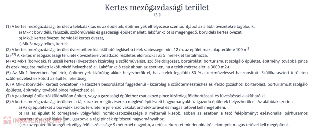 a) Mk-1: borvidéki, faluszéli, szőlőművelés és gazdasági épület mellett, lakófunkciót is megengedő, borvidéki kertes övezet,
