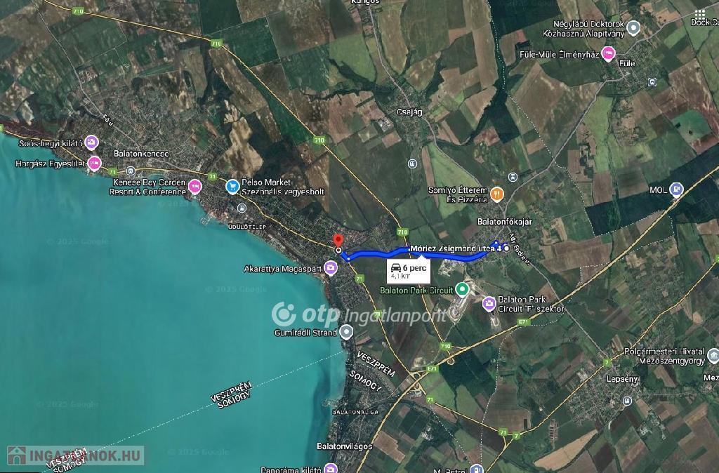 Közlekedés: a helyi buszjárat a központban áll meg a Postánál, innen pár percre található az ingatlan. Budapestről autóval 1,15 óra, vonattal kb. 2 óra. A Balaton 6 perc autóval (Akarattya).