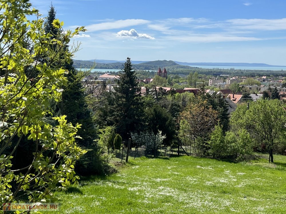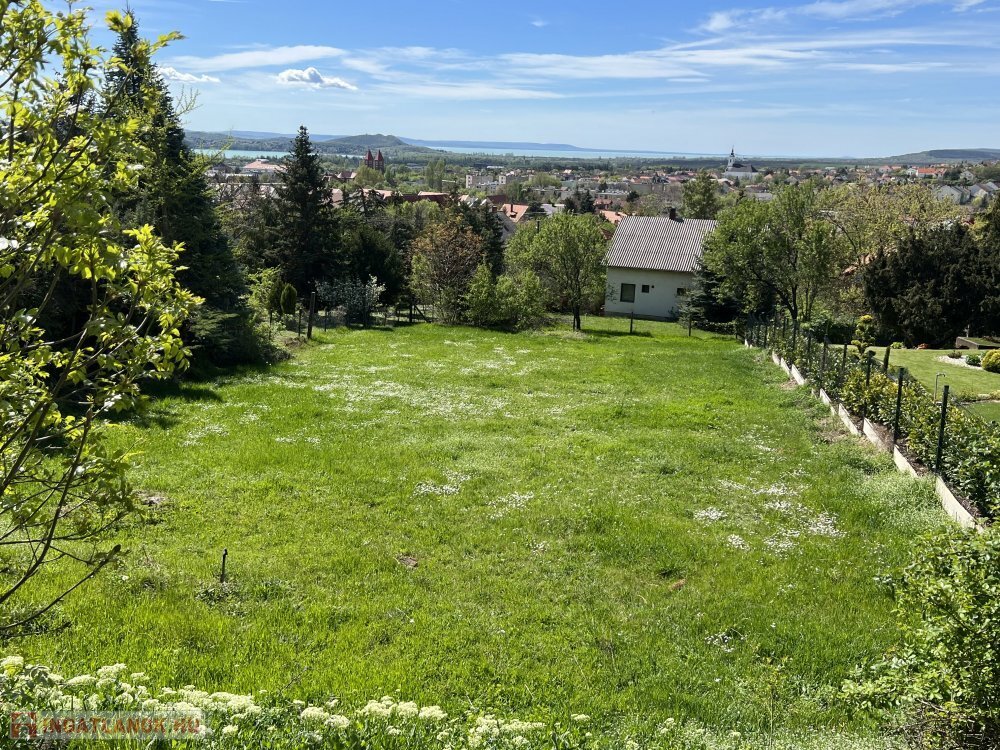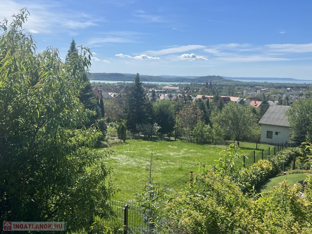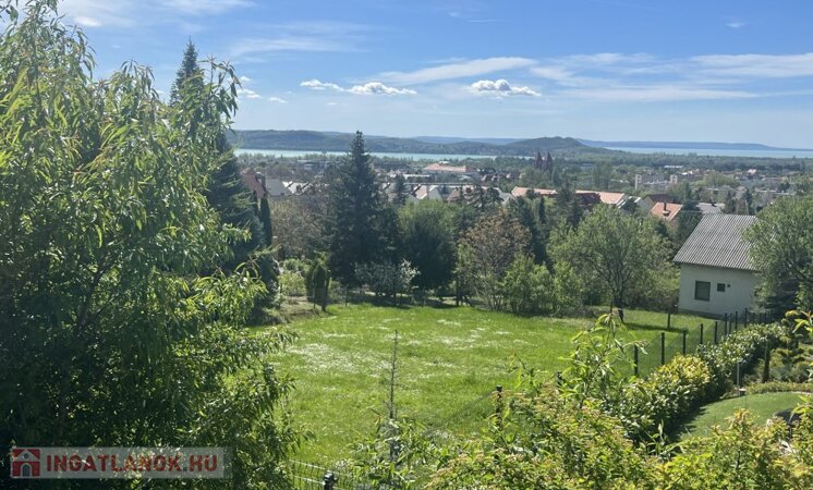 Kíváló adottságú balatonfüredi belterületi 1006 nm-es építési telek, elvehetetlen balatoni panorámával Tihanyra.