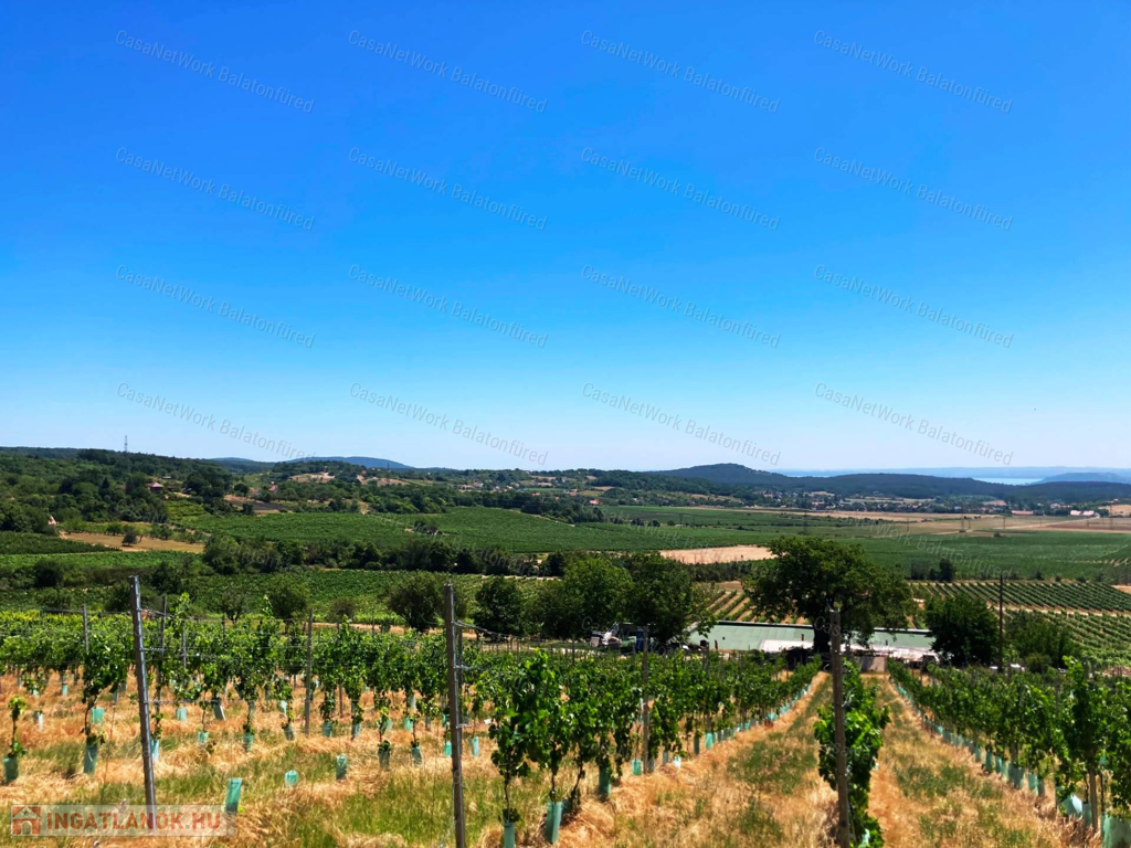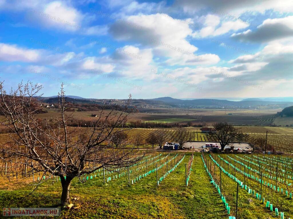 panorámával kifüggesztés, köteles, szőlővel 80 %-ban betelepített, merlot és rizling.