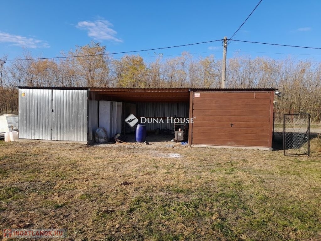 A telken felépítettek két beton aljzaton álló lemezszerkezetes garázst darabonként 6 X 3,5 m melyeket egy 4 X 6 m-es fedett tároló köt össze.