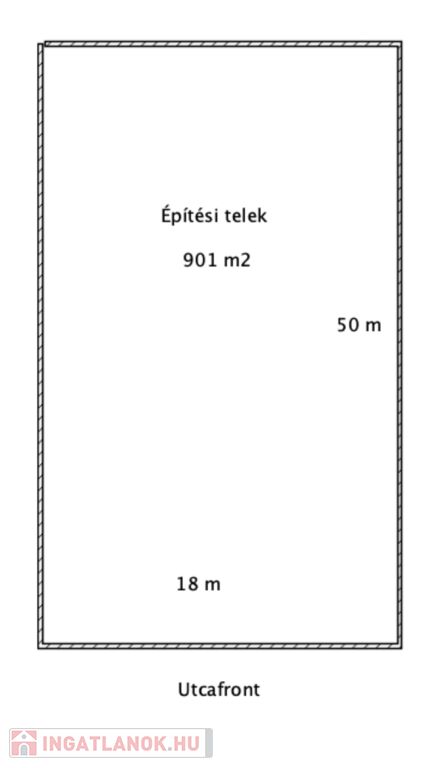 - Méret: 901 m² (kb. 18 m utcafront × 50 m mélység)