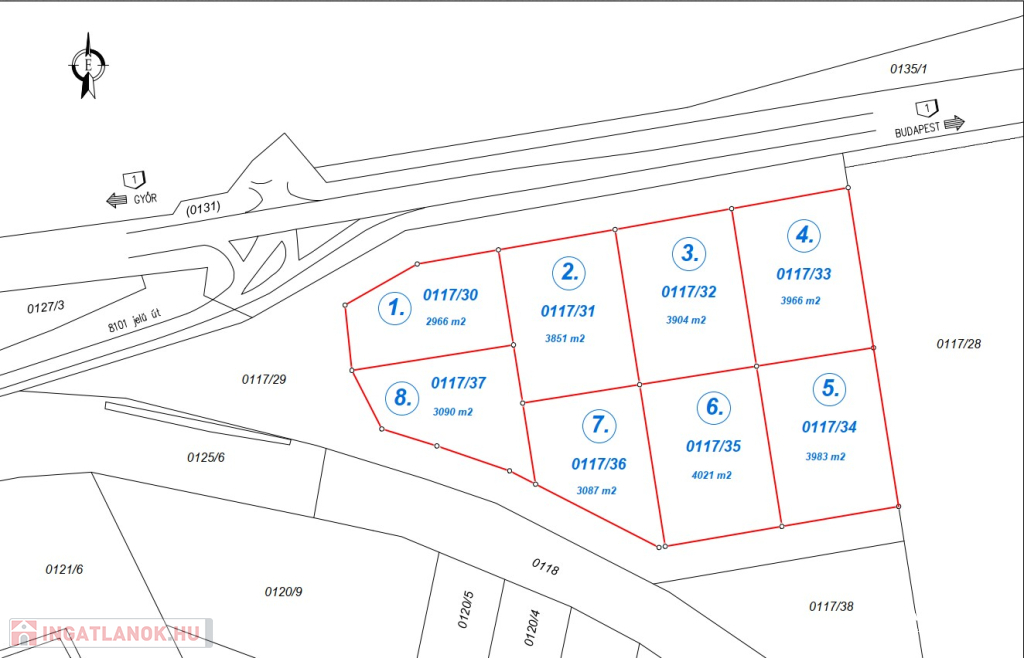 Mindegyik telek saját önálló helyrajzi számmal rendelkezik.