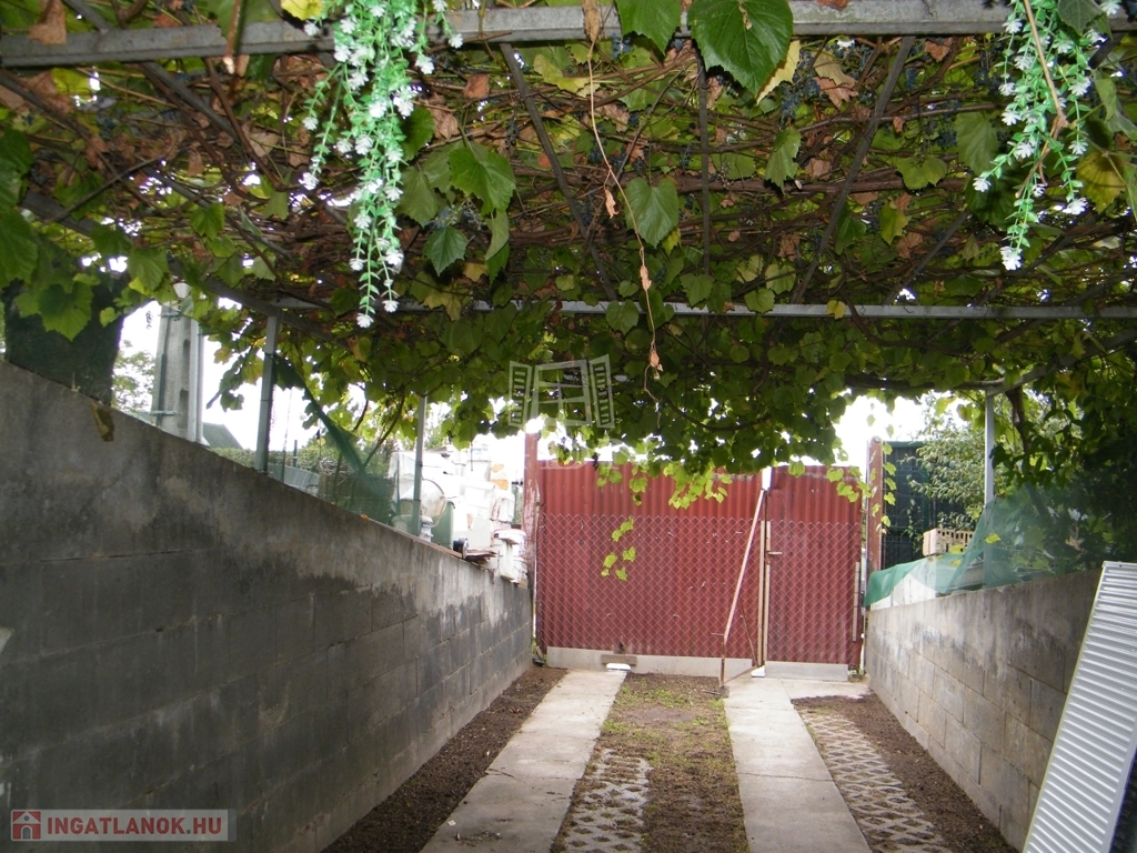 Parkolás: a kerten belül szilárd burkolatú, lugasos kialakítású kocsibeállóban.