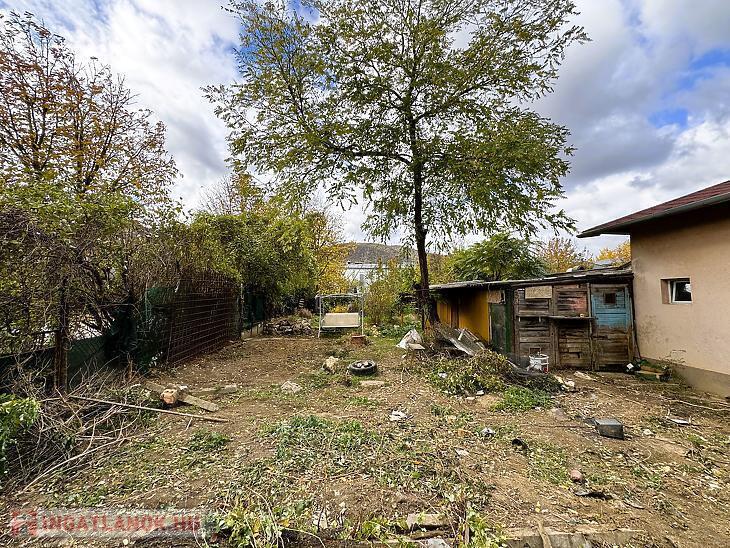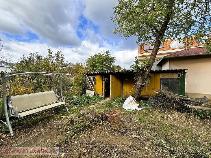 A telken jelenleg két különálló épület és egy dupla beállós garázs található, amely felújítást igényel, de akár bontás után az új építkezéshez is jó alapot nyújthat.
