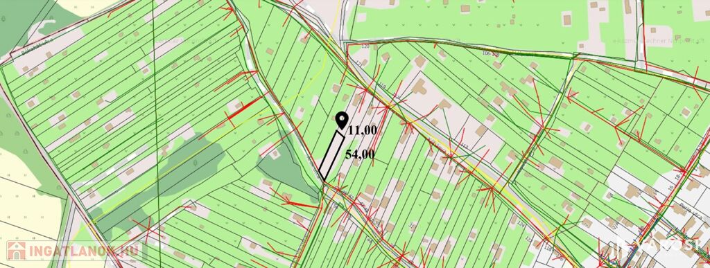 Emelkedős terepviszony a kert vége felé indulva ezért ajánlott a kert elejét hasznosítani lakóingatlan elhelyezésére.