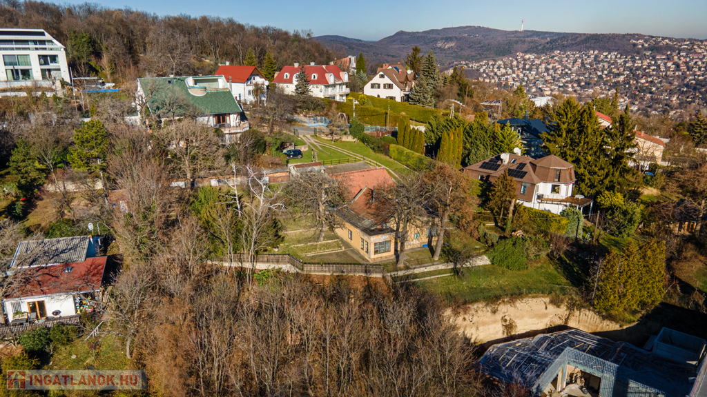 XII. Kútvölgy – Virányos találkozásnál, elegáns részen, luxus családi házak környezetében, gyönyörű kilátással rendelkező, magaslaton elhelyezkedő, TÖKÉLETES DÉLI tájolású, 1750 nm–es, összközműves építési telek, plusz ~550 nm telekhasználati területtel együtt eladó!