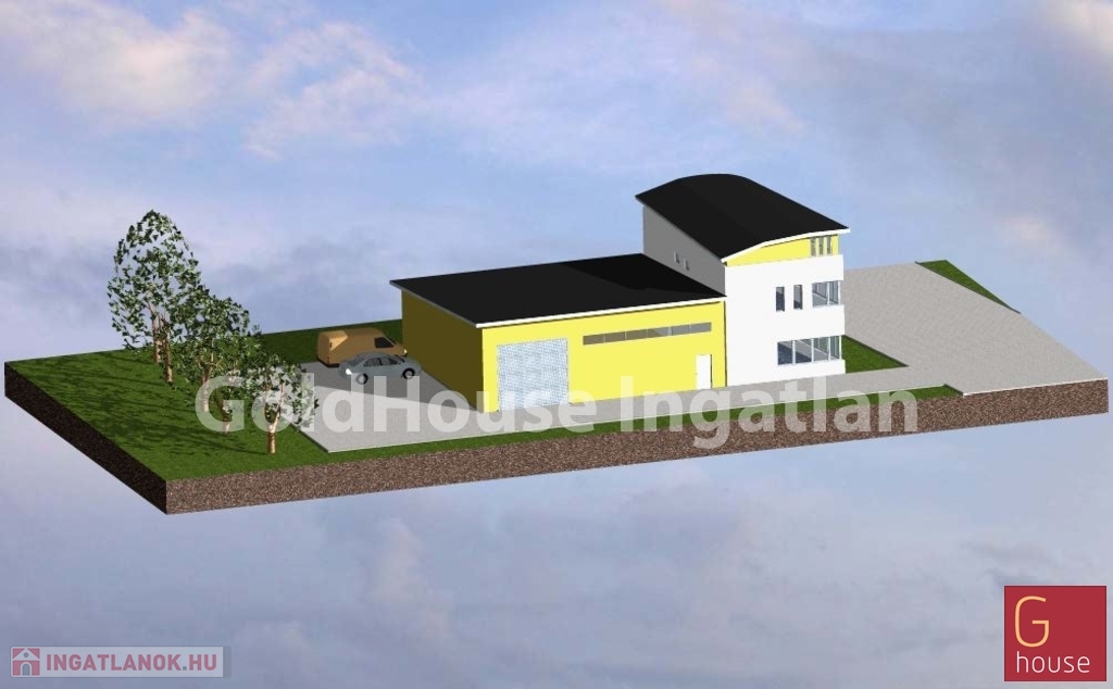 Besorolásának köszönhetően a telekre a három szinten összesen mintegy 1000nm-s kereskedelmi, ipari vagy üzemi ingatlan építhető. Szemléltetésnek a képen a tulajdonos által megálmodott, hasznosításra alkalmas ingatlan látványterve látható.