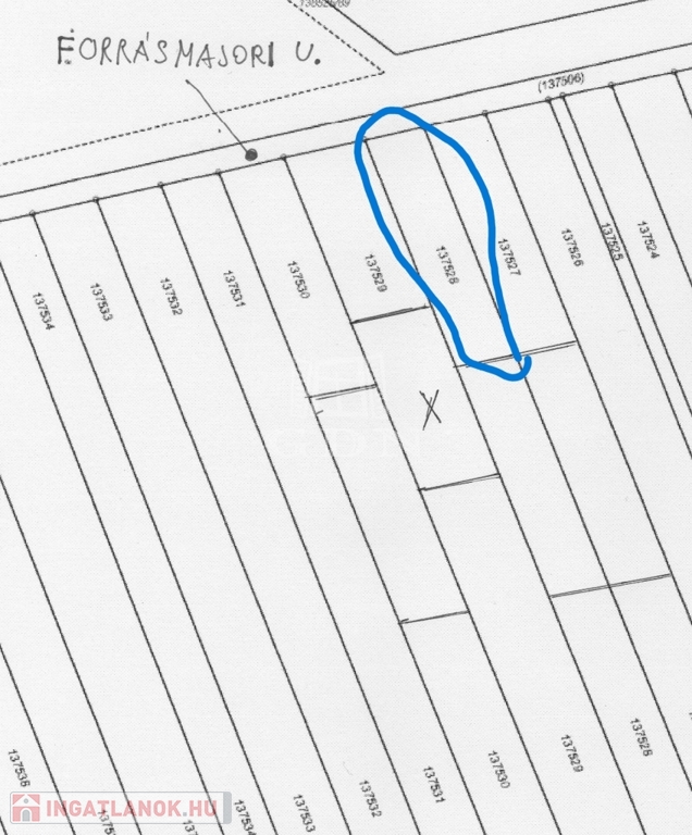 Leginkább befektetés céljából, a XVII. kerületben, a Forrásmajor utcában eladó egy 834 m2 területű (60 m *13,9 m) telek.(Lke-1/44)
