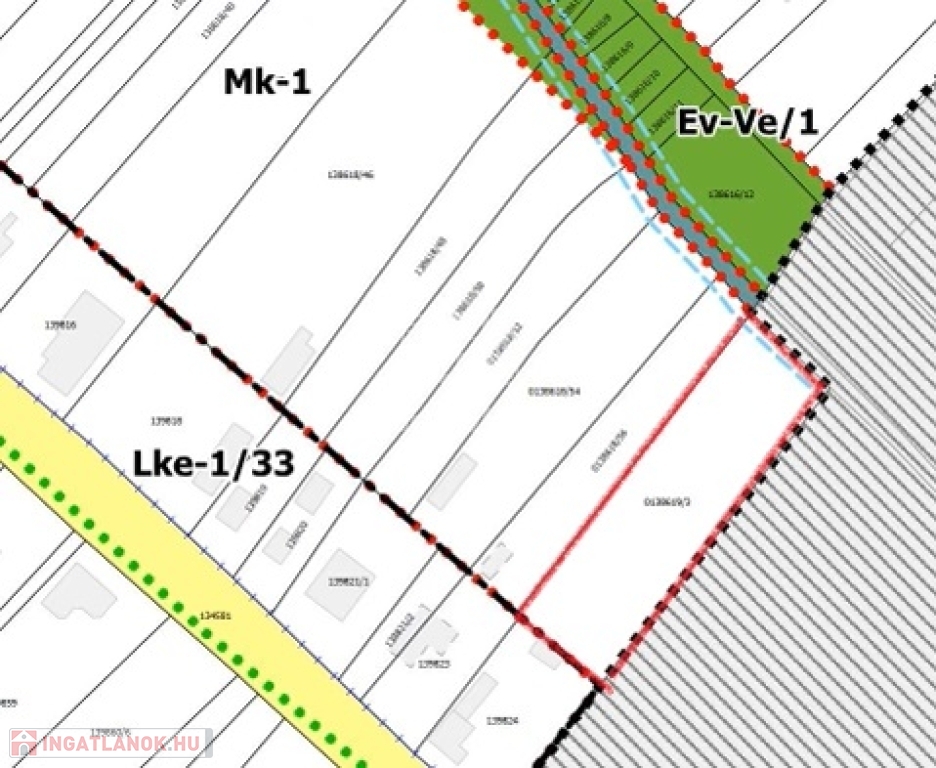 A telek külterület besorolásba esik, 3% beépítés lehetséges.