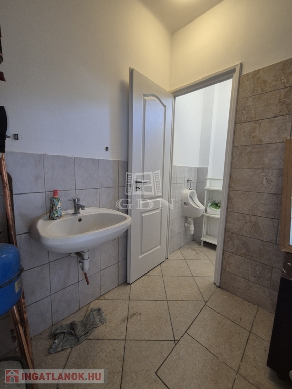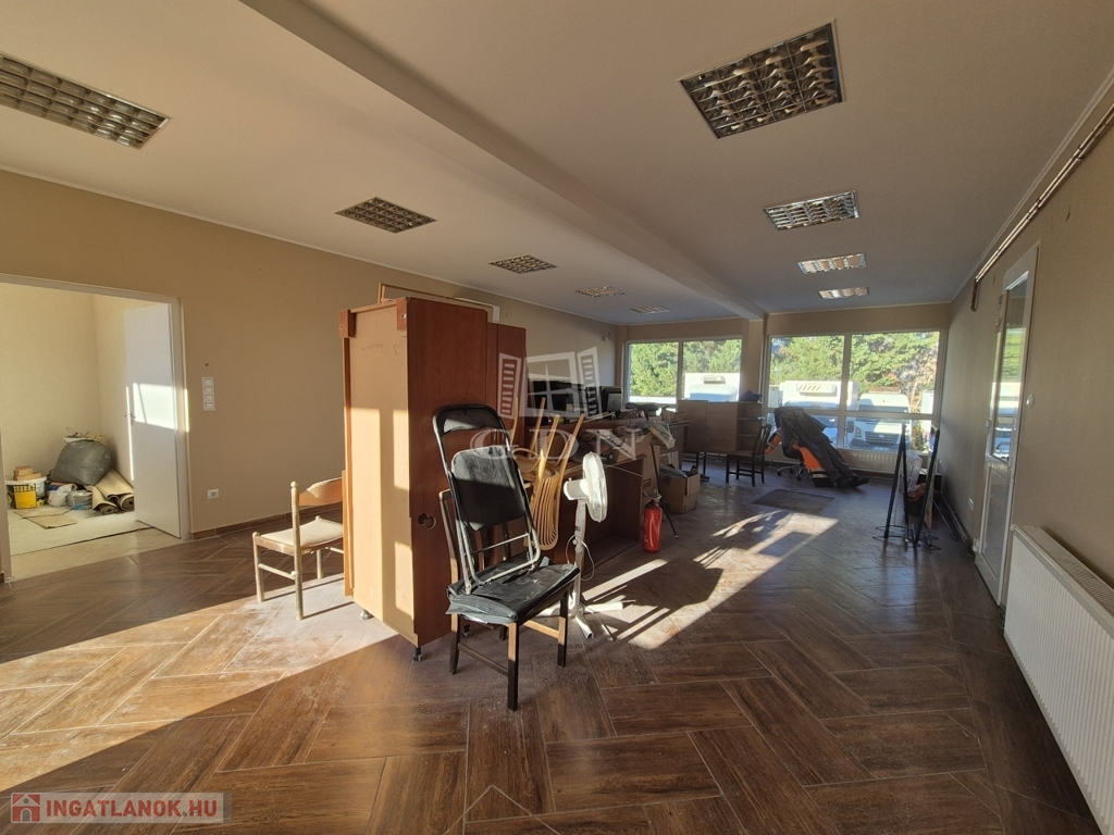 A nagy részben betonozott és térkövezett telken egy körbejárható, szigetelt, kifogástalan állapotú, korszerű gépészettel, konyhával, tárgyalóval, szobákkal és szociális helyiségekkel rendelkező, 200 m2 alapterületű épületet találunk.