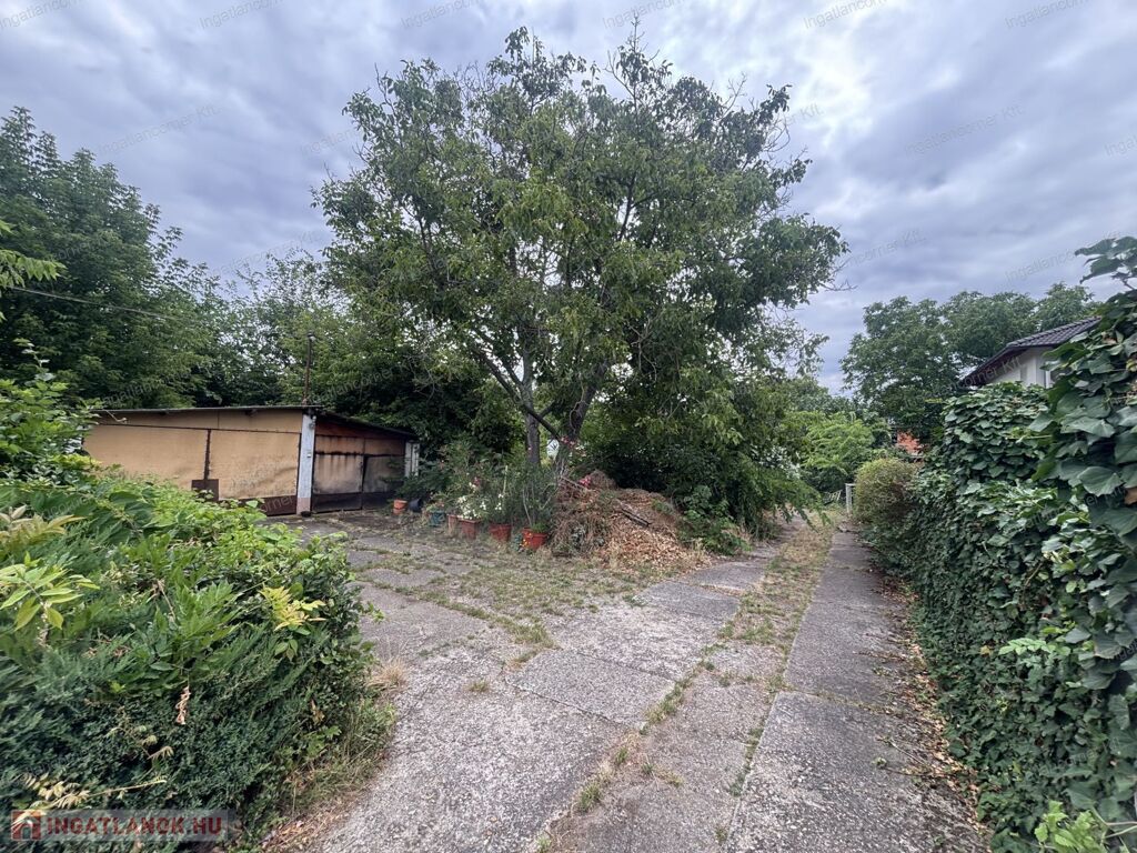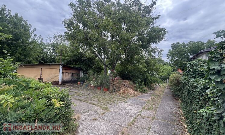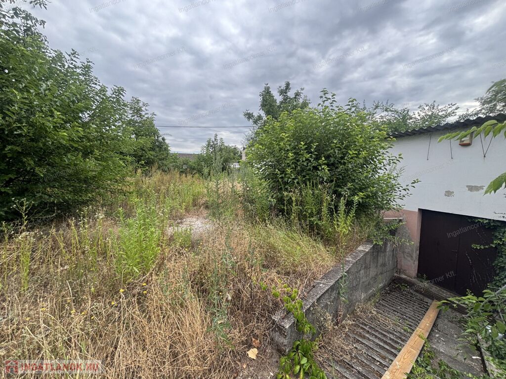 A telek utcafronti részén egy önálló családi ház található, a telek hátsó fele eladó, amin jelenleg egy műhely épület van, amit el kell bontani.