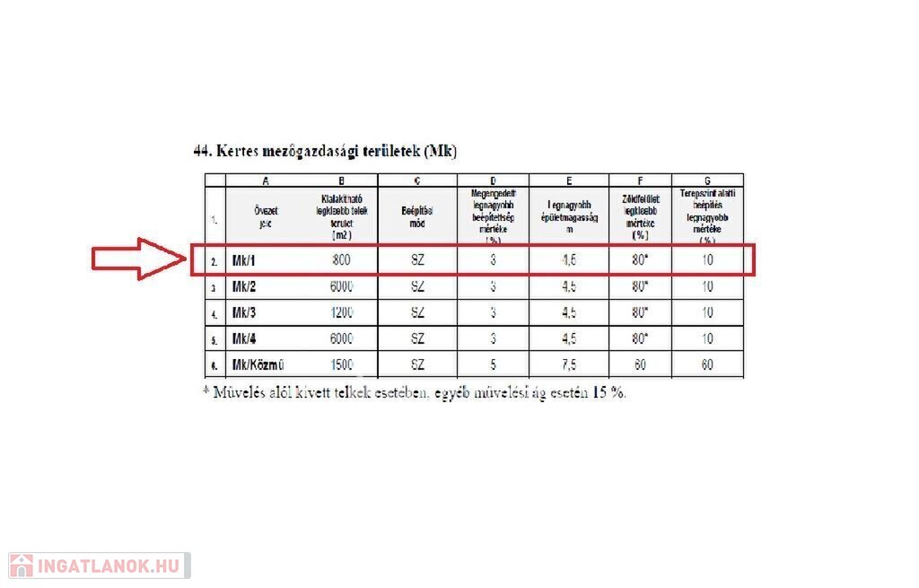 A telek 3%-a beépíthető, a környék zöld nyugalmában már sok lakóház áll. Az építmény maximális magassága 4,5 méter lehet. Miután kiemelt zöldövezeti rész, így a zöldterületből 80%-ot meg kell tartani.