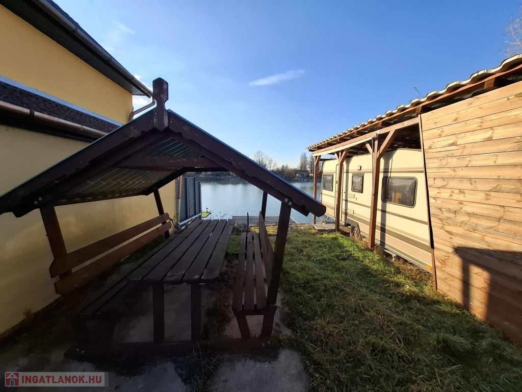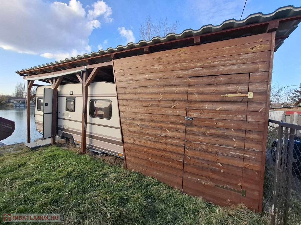 Cegléd belterületén a horgásztavak közvetlen partján eladó picike telek (49 m2) saját stéggel, lakókocsival (11 m2) és 6 m2-es fa tárolóval, kerti fedett fa kiülős garnitúrával (2 pad és asztal). A lakókocsi összes berendezése az ár részét képzi + a kerti fa kiülős rész is + a tároló kinti mosdóval benne. A horgászási lehetőséget nyújtó, gyönyörű vízparti telek előtt megy el a villany és csatorna hálózat az utcában - vezetékes víz a másik utcában található. A lakókocsiban étkező asztal, kis hálószoba ággyal, konyhabútor, zuhanyzó tálca és mosdó található. A tárolóban pedig a mellékhelyiség is helyet kapott.