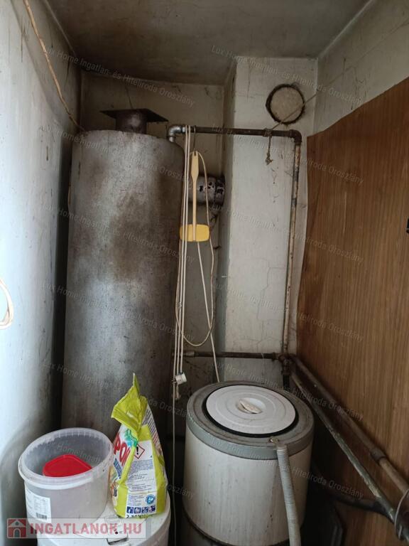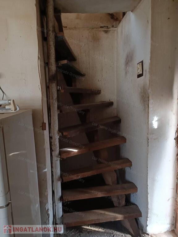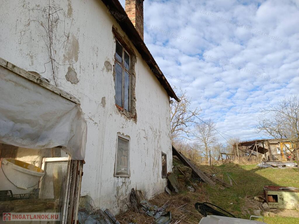 -Az egyik telken tégla építésű két szintes ház, mely felújításra vár. Alsó szinten egy előtér, szoba, kamra, vizesblokk, és szinteltolással egy pince található. A felső szinten egy szoba van jelenleg kialakítva, amiből erkély is nyílik. Jelenleg ablakos, az erkély nem használt.