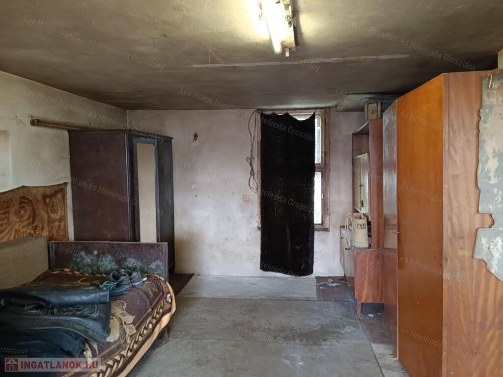 -Az egyik telken tégla építésű két szintes ház, mely felújításra vár. Alsó szinten egy előtér, szoba, kamra, vizesblokk, és szinteltolással egy pince található. A felső szinten egy szoba van jelenleg kialakítva, amiből erkély is nyílik. Jelenleg ablakos, az erkély nem használt.