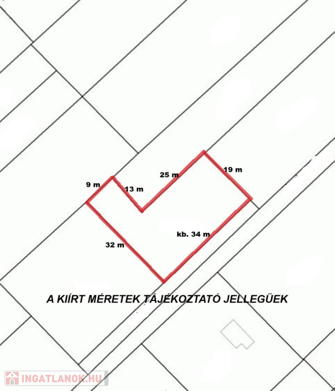 A telek kimérése folyamatban van, utcafront szélessége kb. 34 m.