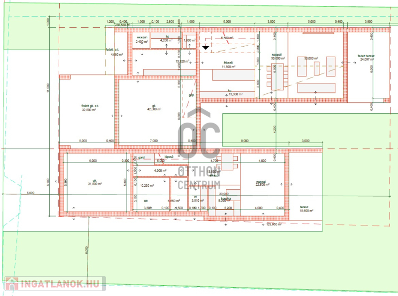 Jelen építési szabályzat alapján családi vagy ikerház épülhet rá.