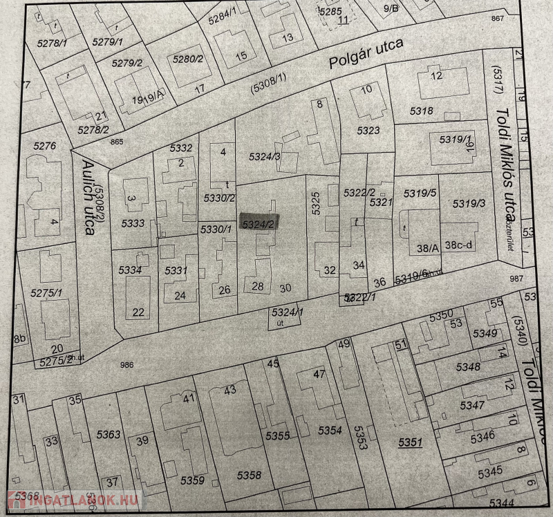 Utcafrontja 22 méter, beépíthetősége 40%, építmény magasság 7,5 méter.