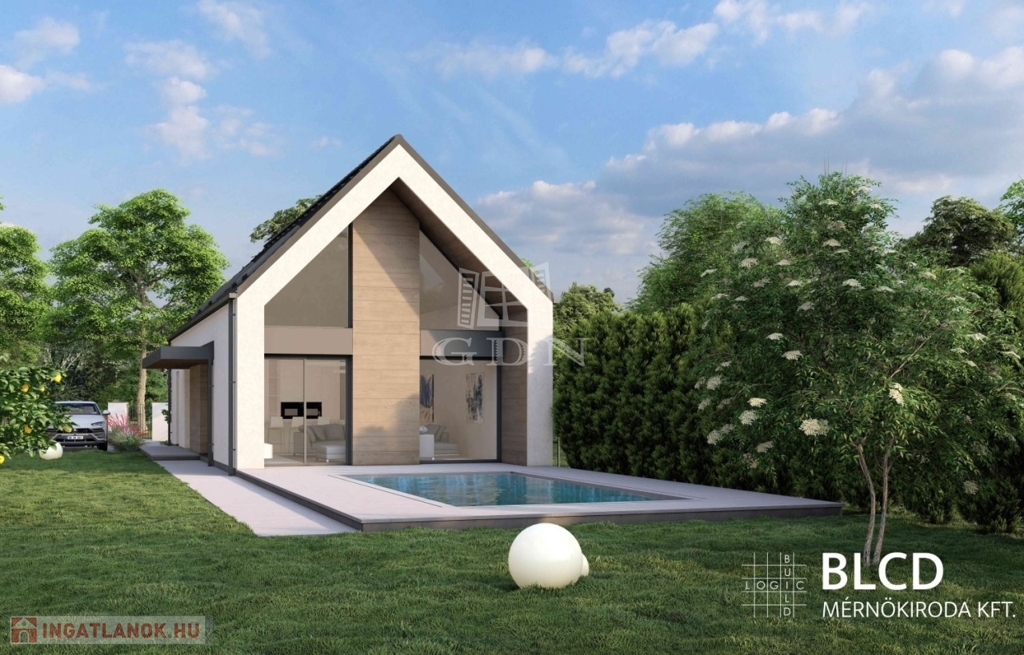 A telekre 2 szintes, összesen 145 nm-es hasznos alapterületű családi házat terveztek, melynek földszintjén amerikai konyhás nappali, fürdő, háztartási helyiség, és egy szoba kap majd helyet. Az emeleten 2 hálószoba, fürdőszoba, és külön WC kerül kialakításra. Amennyiben a vevő szeretné, a jelenlegi tulajdonos részletes megbeszélés után, kulcsrakészre építi a házat.