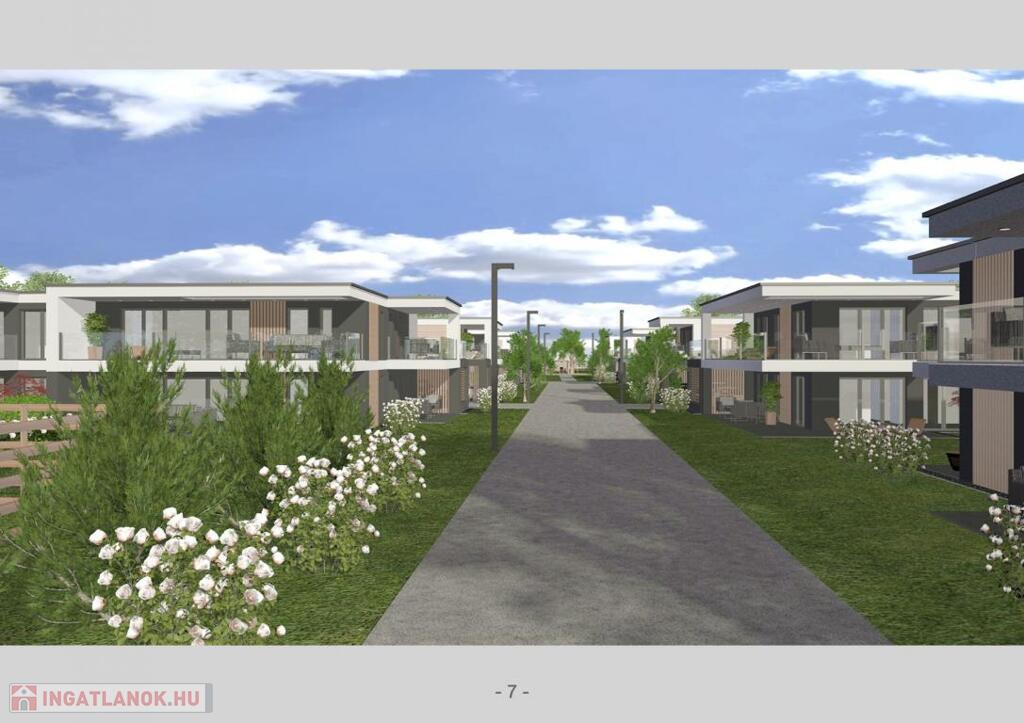 A terület családi házakkal határolt, igen kedvező fekvésű. A megfelelő teret biztosító telkek 19X4 lakás (összesen 76 lakás alakítható ki) elhelyezésére adnak optimális lehetőséget. Egy olyan újépítésű lakóparknak, ahol privát telekrésszel is rendelkező családi házas beépítés megvalósulását álmodták meg.