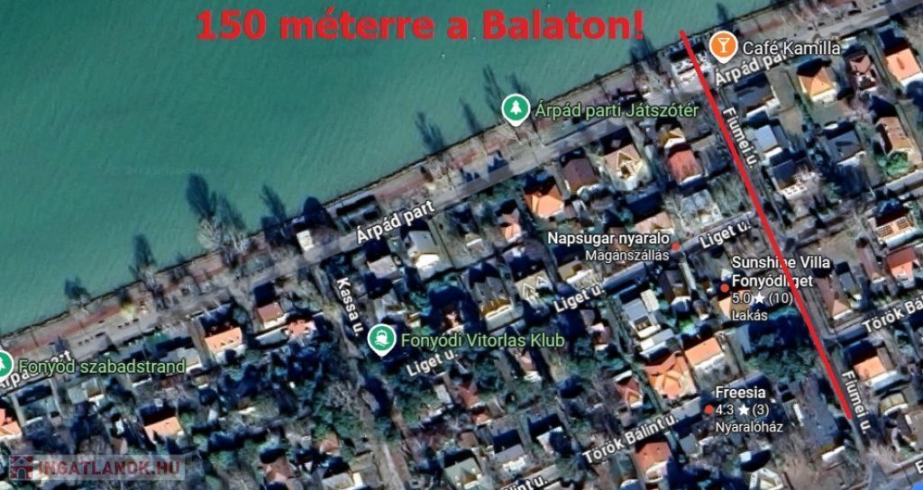 A vízpart (130m) közelében található több mint 2000 négyzetméteres telken egy L alakú, kétszárnyú üdülőépület, mely a beruházást követően akár 1057 négyzetméter hasznos terület értékesítését rejti magában.