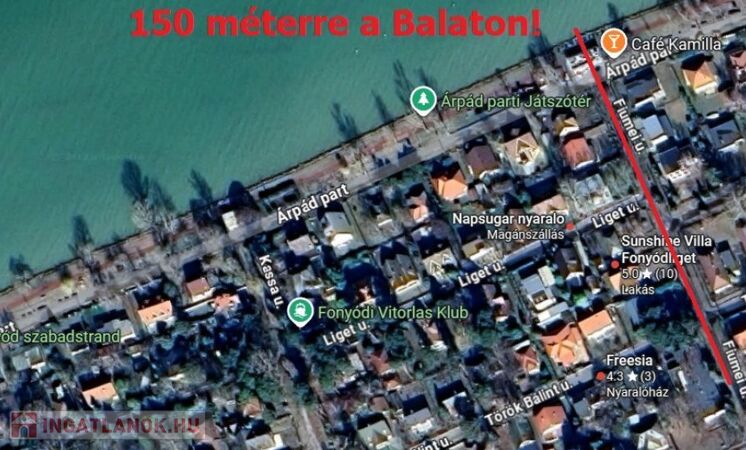 A vízpart (130m) közelében található több mint 2000 négyzetméteres telken egy L alakú, kétszárnyú üdülőépület, mely a beruházást követően akár 1057 négyzetméter hasznos terület értékesítését rejti magában.