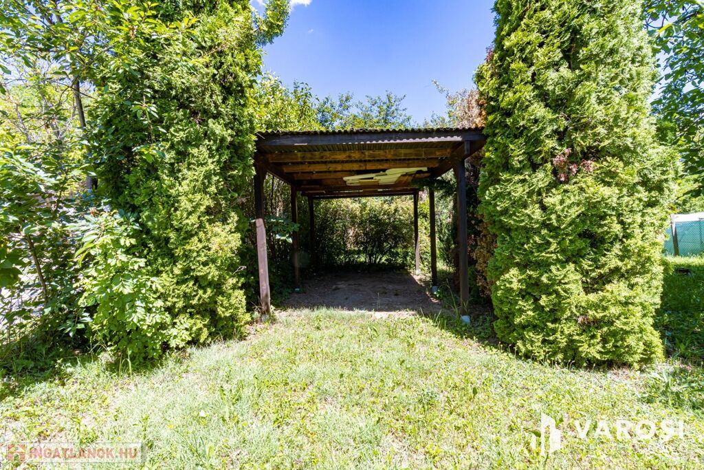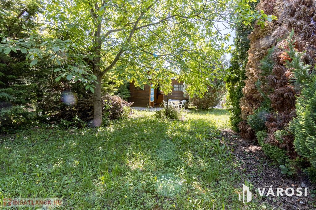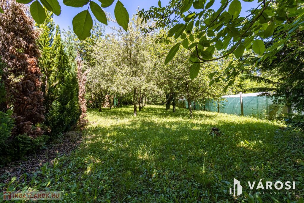 In Gödöllő, just 2.6 km from the Máriabesnyő Basilica and the Incső residential park, a 731 m² inner-city building plot is for sale, classified as Lke 0.6 (garden residential zone), including a 22 m² insulated wooden house.